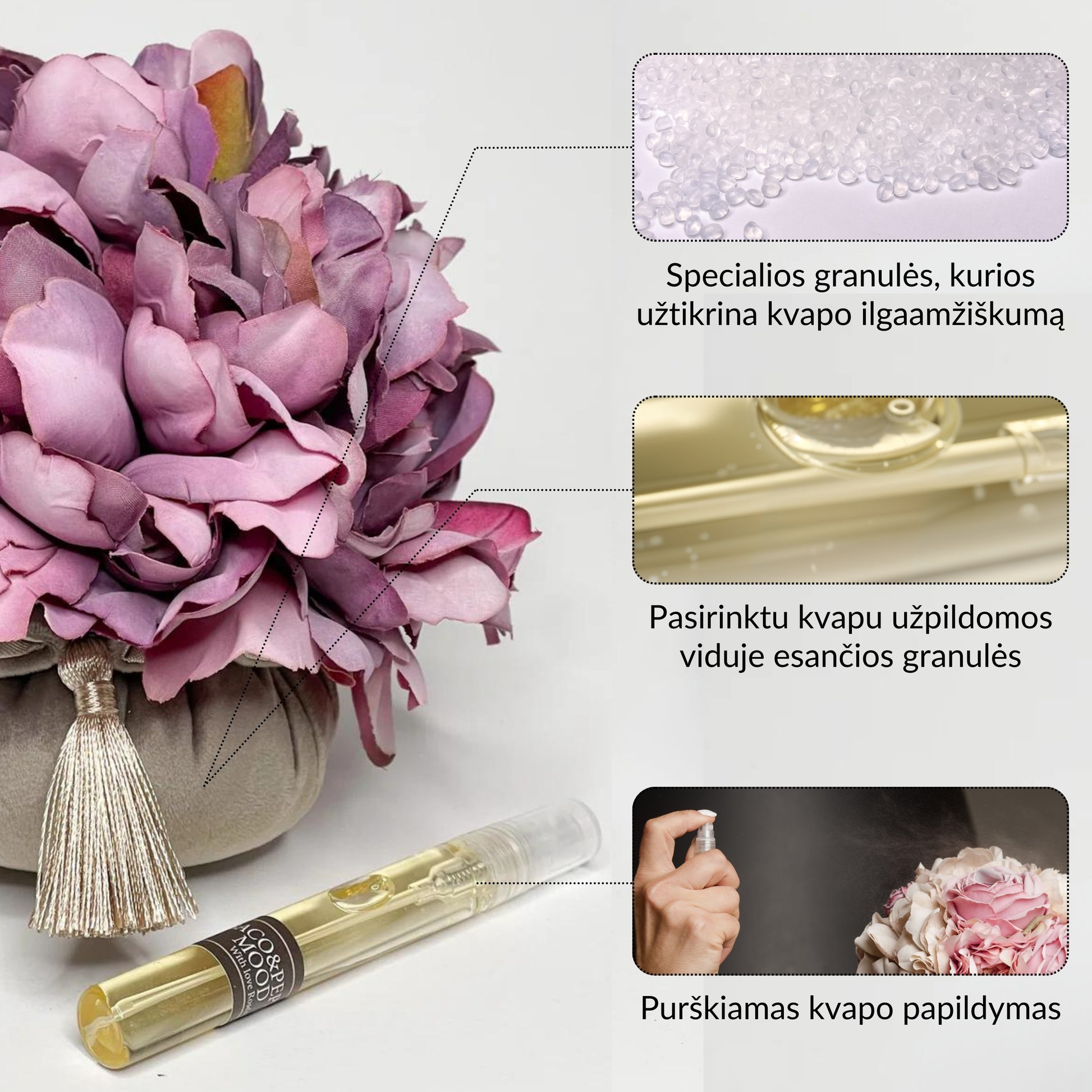 For a more intense scent, spray the scent supplement on a cushion or ring.🌹