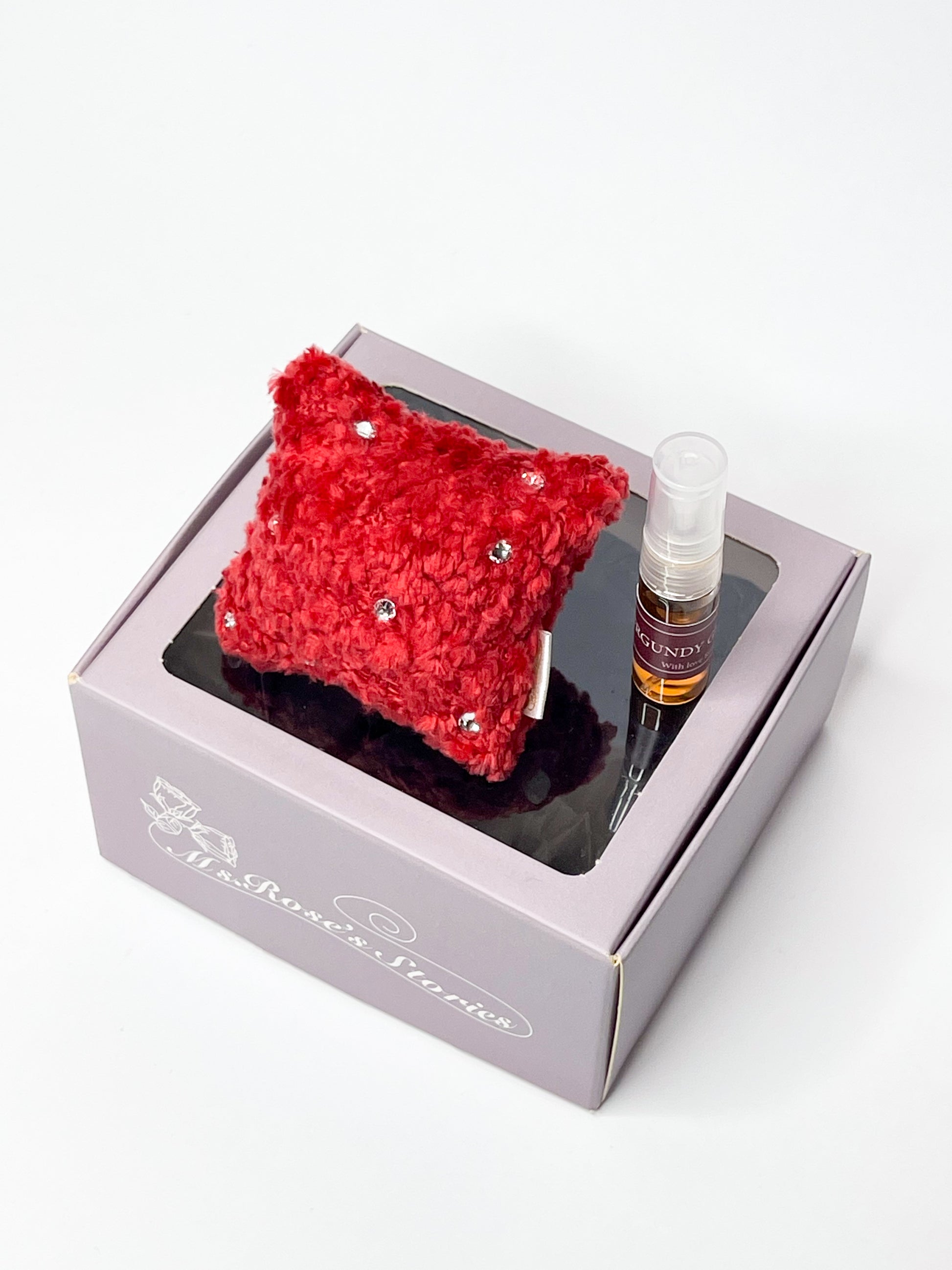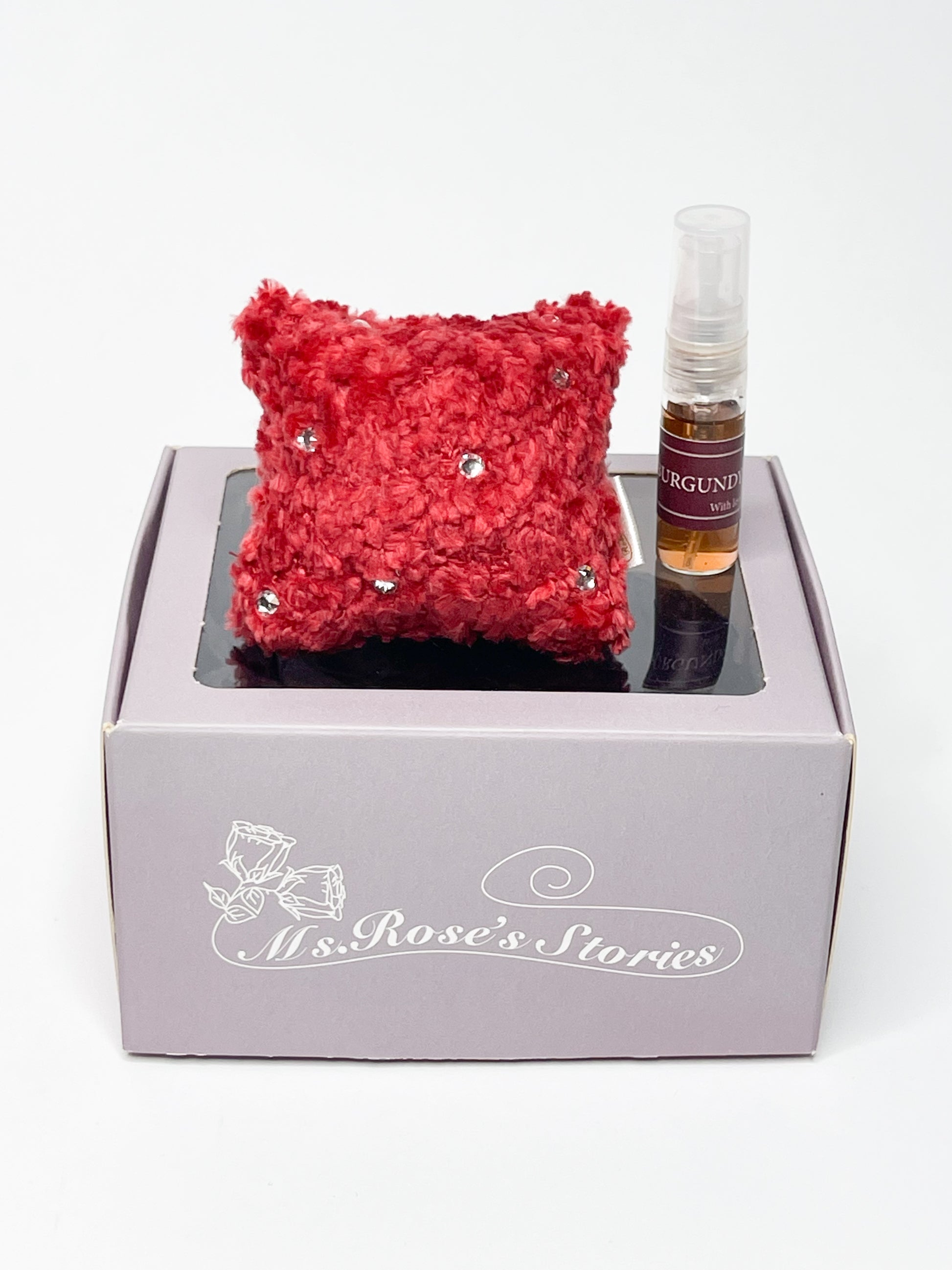 Pagalvėlės dydis – 6 cm * 6 cm (dėžutės išmatavimai 11 cm * 10 cm * 6 cm)