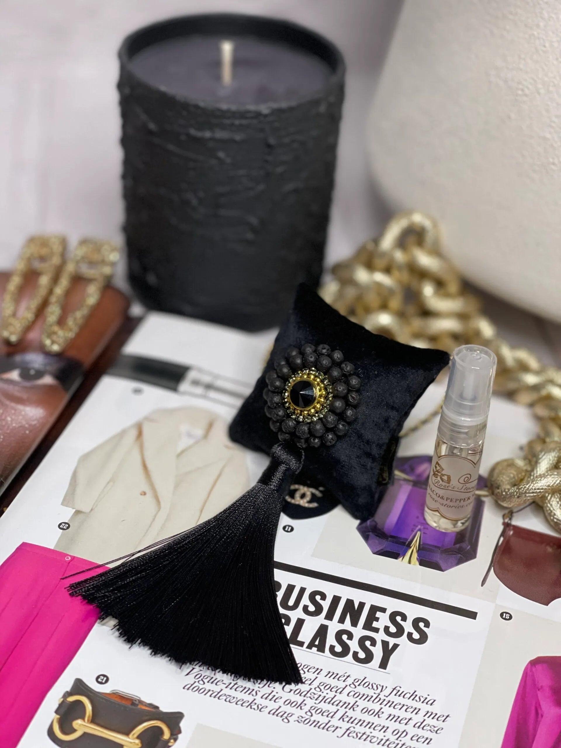 Tai rytietiškas, šiltas ir kerintis aromatas, prisodrintas ambros ir iris akordų, suteikiančių aromatui gilumo ir magijos. Pačiulis ir gvajako mediena dar labiau sustiprina jo išskirtinumą, palikdami namuose jausmingą ir prabangų prisilietimą.